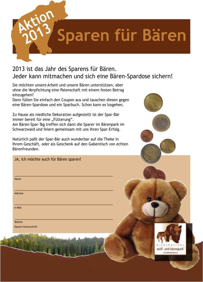 ... Falls Ihr Interesse am "Spar-Bär" habt, beim nächsten Besuch im Bärenpark den Flyer ausfüllen und gleich den Sparbär und Sparbuch mitnehmen ...